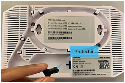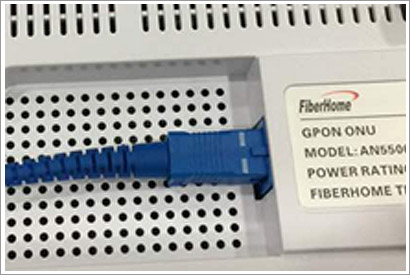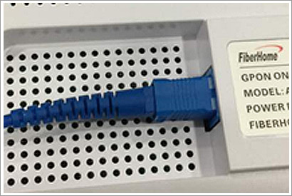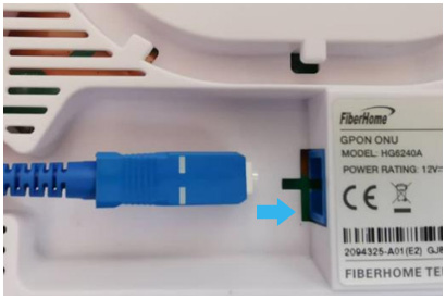 STEP 4 : Insert the fiber patch cord connector firmly and completely into the GPON ONU fiber interface until you hear a "click" sound
