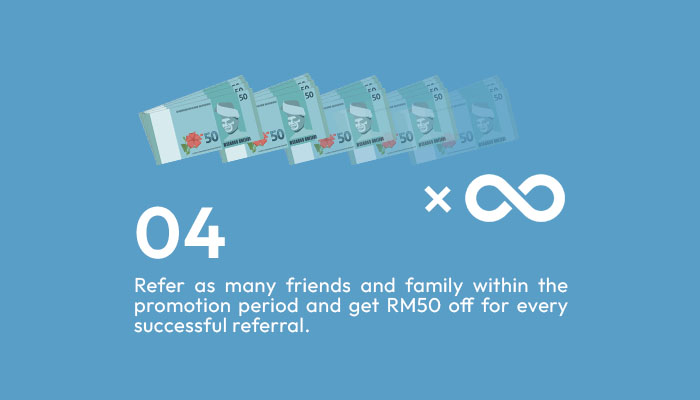 - The Referral Bonus will be granted in the form of RM50 bill discount, which will be reflected in both the Referrer’s and Referee’s bill statement. There is also no limit as to how many referrals the Referrer can get in a month, but each bill can only be granted 1 (ONE) Referral Bonus (refer to below illustration). Any unutilized Referral Bonus will be brought forward to cover future bills with no expiration date.